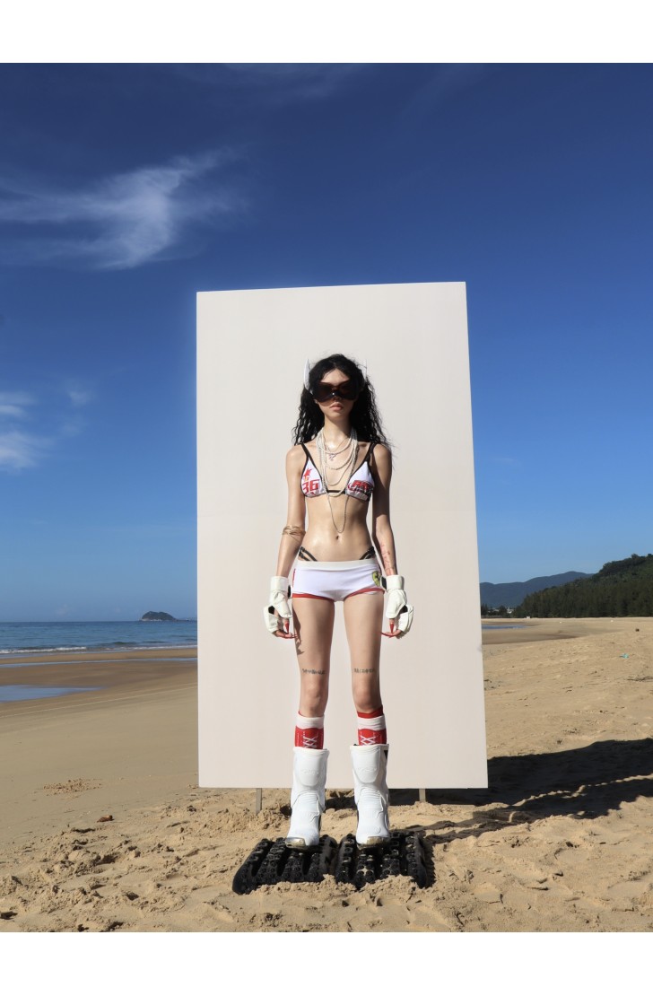 366Vol21 white "Ferrarrri" swim shorts