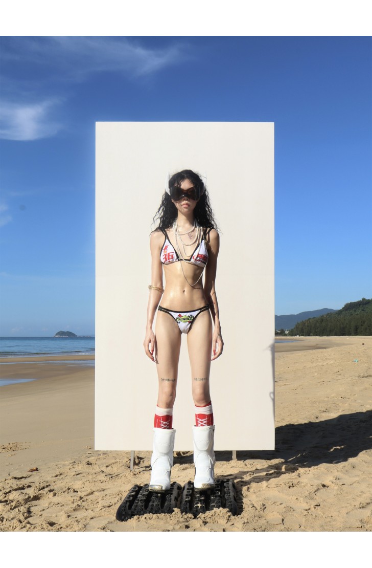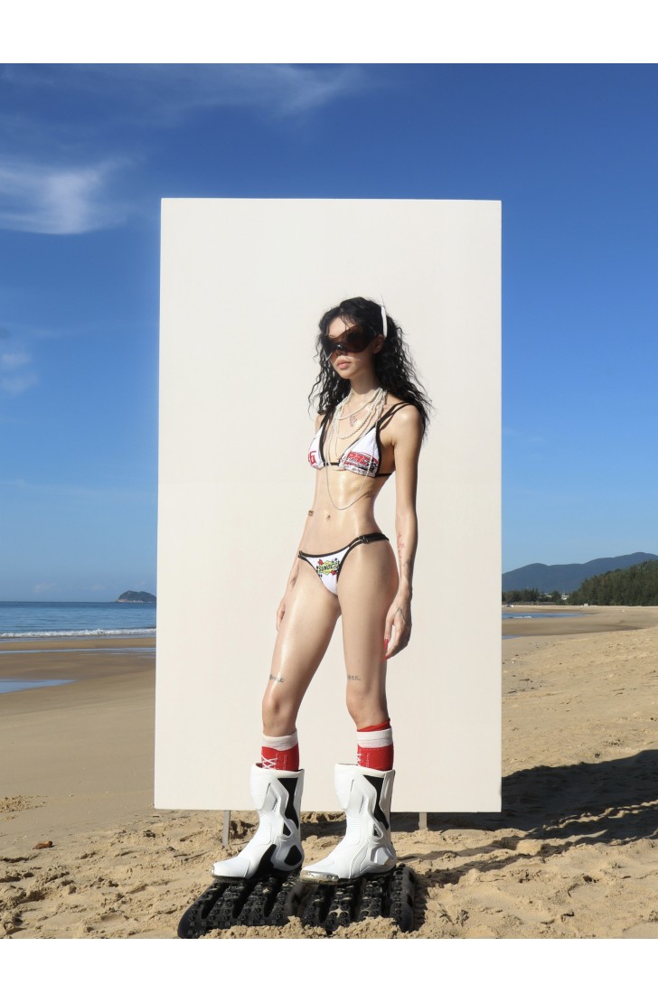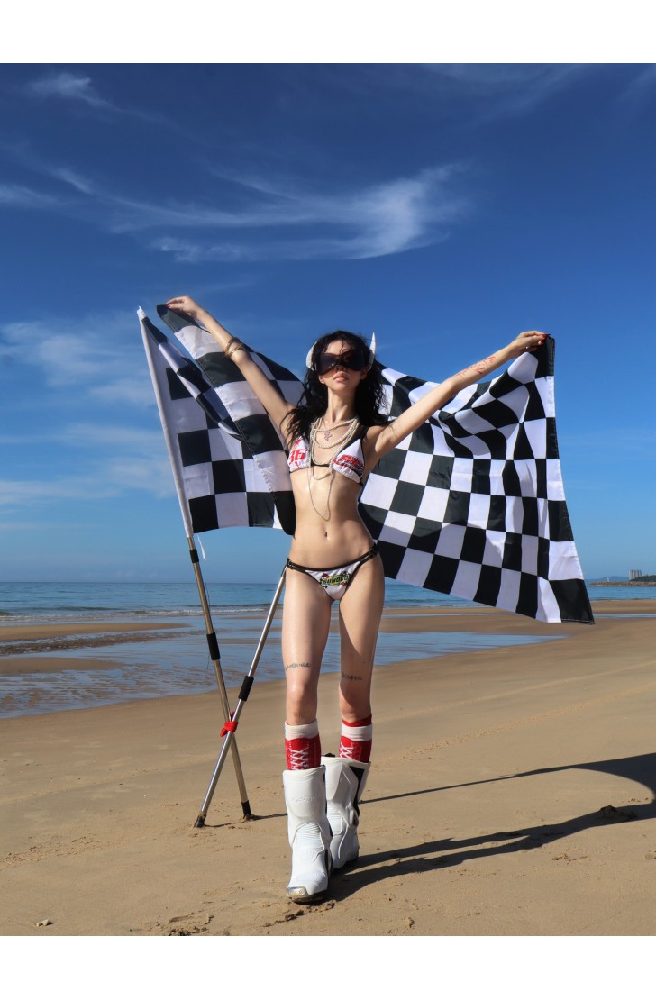 366Vol21 white racing gal printed bikini with adjustable stripes fits for all sizes